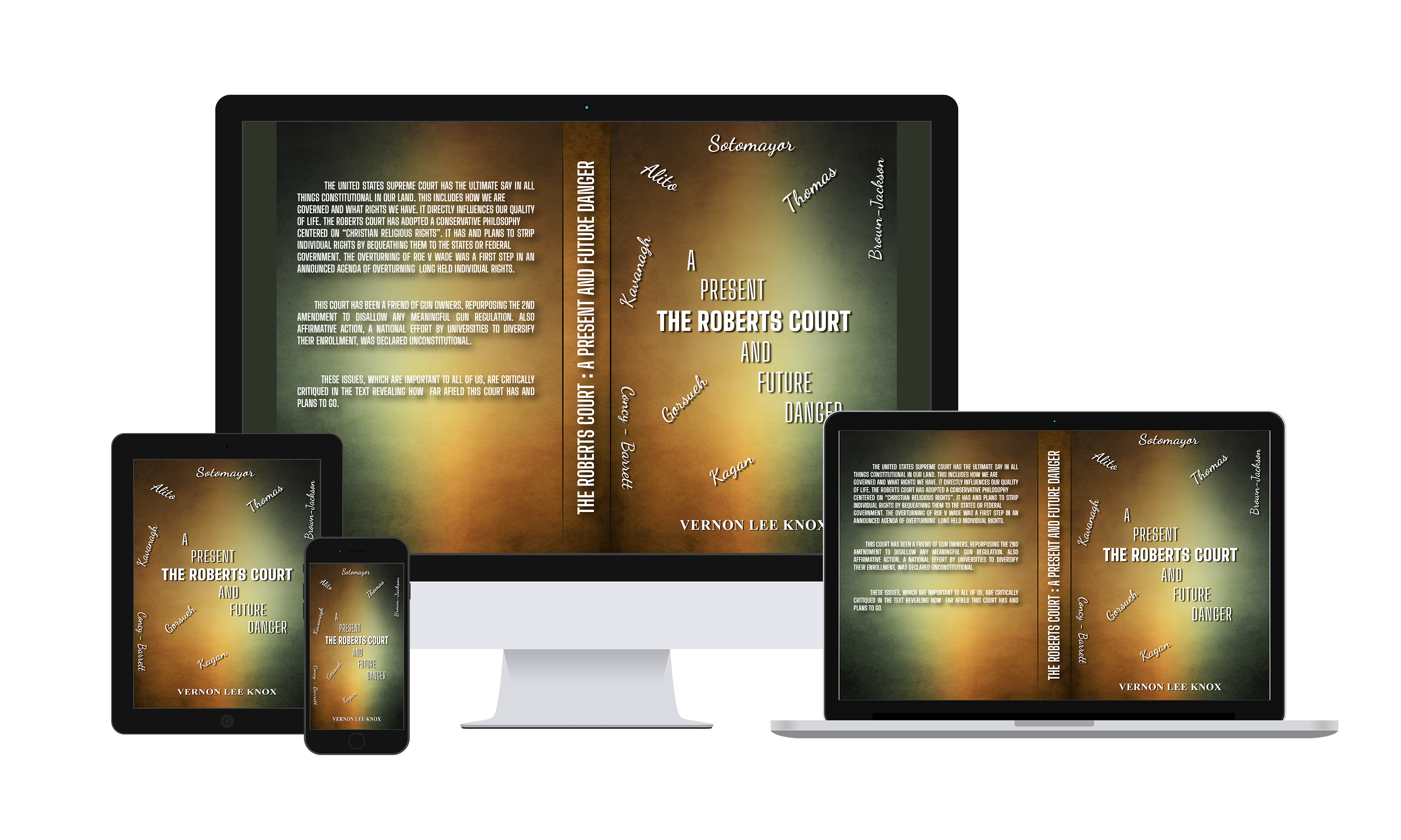 Hi, I’m Vernon the author of the book “The Robert’s Court a Present and Future Danger”. It describes how The Robert’s Supreme Court has embraced a conservative legal philosophy that will change our nation.